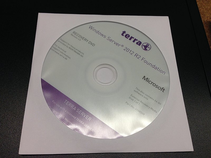 Eine Download-Möglichkeit oder ein ungebrandetes Installationsmedium gibt es meines Wissens nach nicht. Die reguläre Windows Server 2012 R2-Installationsmedien helfen auch nicht weiter, da diese die Foundation-Edition nicht enthalten. Eine kurze Mail an den Support von Wortmann reichte aus, damit eine Recovery-DVD zugeschickt wird (1. Tag: Mail an Wortmann, 2. Tag: Mail von der Retoureabteilung erhalten, das der Artikel zugeschickt wird, 3. Tag: UPS brachte das Paket).