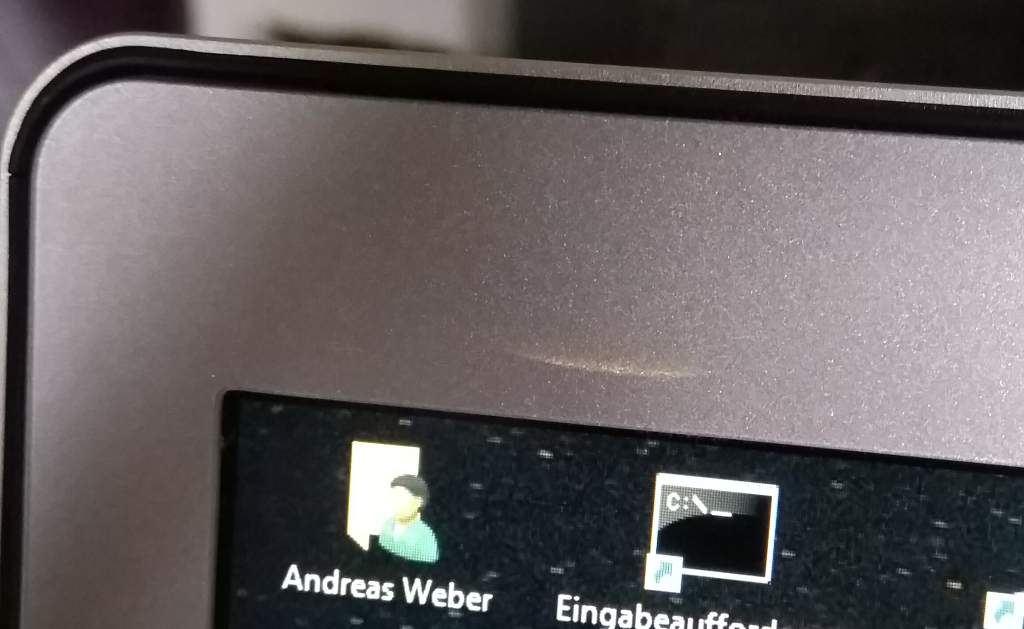 Weiter fällt im Dunkeln oberhalb vom Display ein leichtes Durchscheinen der Hintergundbeleuchtung auf. Vmtl. sind an diesen Stelle irgendwelche Kunststoffteile bzw. deren Kanten: