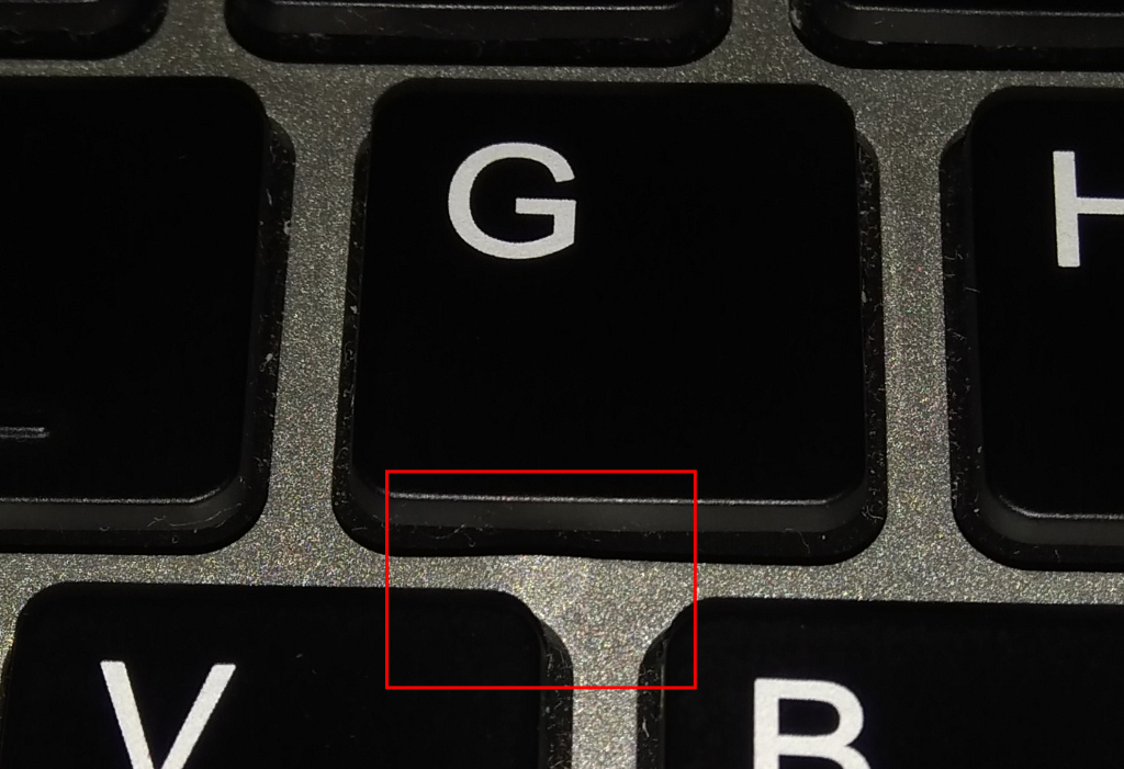 So auf den ersten Blick ist das Gerät ordentlich verarbeitet. Größere Ungereimtheiten in Sachen Spaltmaße sind mir nicht aufgefallen, nachgemessen habe ich aber auch nicht. Einzig eine etwas eigenartige Ausbuchtung zwischen den Tasten “G” und “V” viel mir auf: