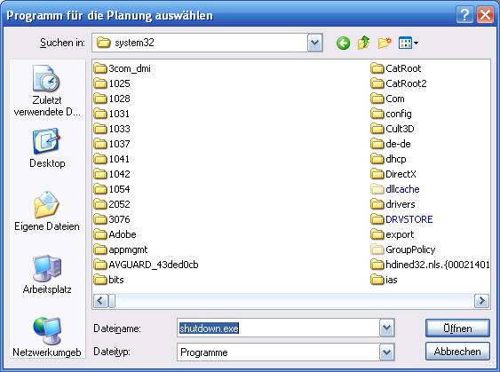 in den Ordner "C:\Windows\System32" navigieren, bei Dateiname "shutdown.exe" eingeben und auf "Öffnen" klicken.