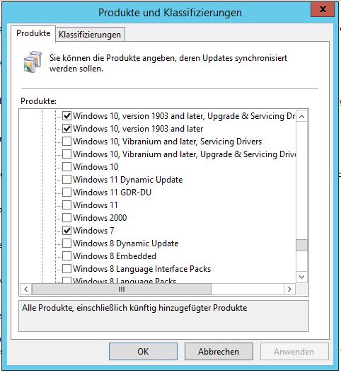 Microsoft macht es einem beim WSUS nicht gerade leicht, Windows 10-Updates zu verteilen. Ein zu diesem Zeitpunkt aktuelles Beispiel stellen die Updates vom November 2021 für Windows 10 21H1 dar, diese fehlten trotzt der Auswahl von “Windows 10” auf einem WSUS eines Kunden.